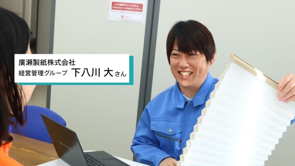 1958(昭和33)年の創業以来、長年にわたり機能紙(※1)や産業資材の製造を手がけてきた「廣瀬製紙株式会社」。エネルギーを多く使用する製紙業において、どのようにCO₂排出量の削減と安定したものづくりを両立しているのか。今回は、その具体的な取り組みについて、2000(平成12)年に入社し、現場改善や環境施策に携わってきた下八川さんにお話を伺いました。
