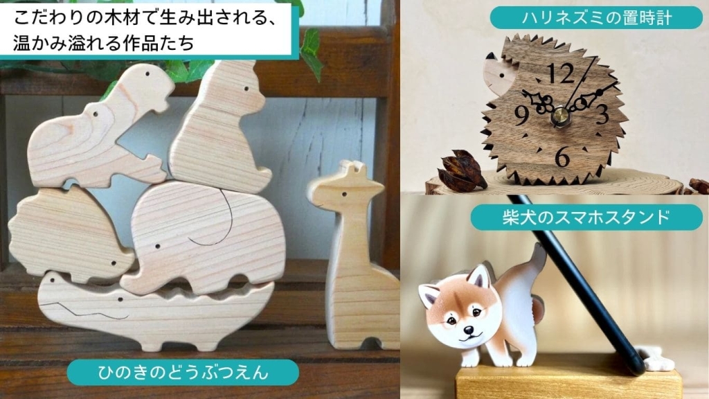 もともとは、赤ちゃん向けの動物の積み木などのおもちゃを作っていました。最近はスマートフォンスタンドや、ハリネズミをモチーフにした置き時計など、暮らしの中で使える日用雑貨も展開しています。