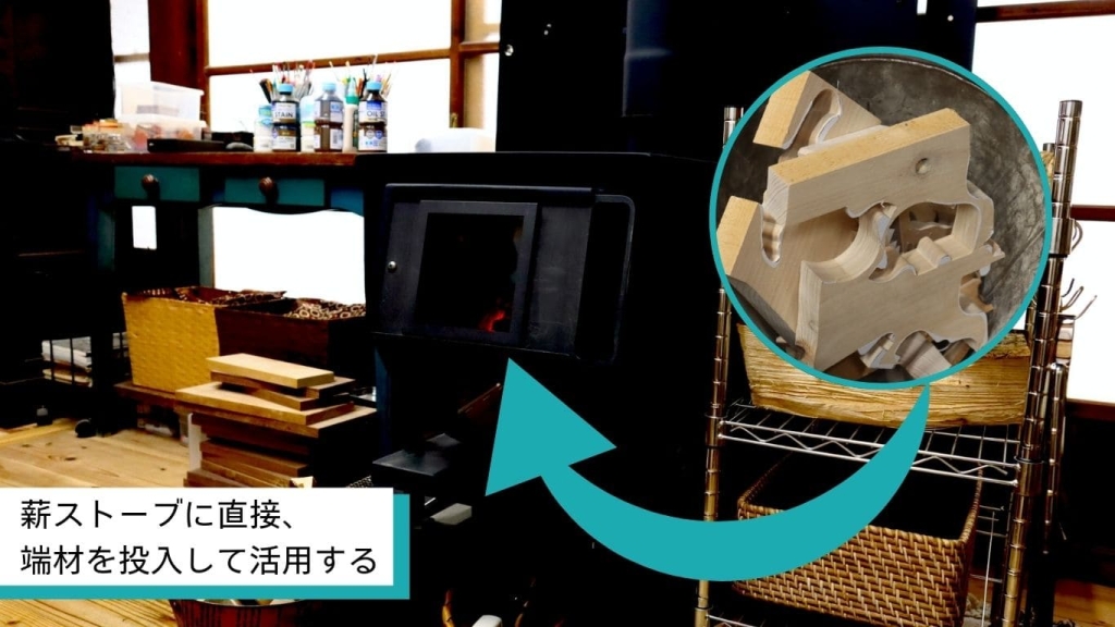 そこで、端材を活用する方法として薪ストーブを使えないかと考え始めました。ヒノキは油分が多く、薪ストーブには向かないとも言われていましたが、そういった木材でも燃やせる薪ストーブがあると聞き、導入することにしました。