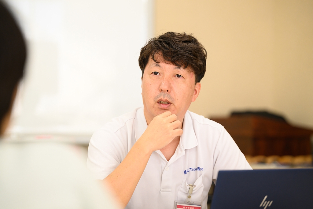 自動車部品の製造を行う「株式会社 ミロクテクノウッド」さんにお伺いさせていただき、代表取締役副社長の中川さん(写真左)、総務部部長の清岡さん(写真右)にお話をお聞きしました!